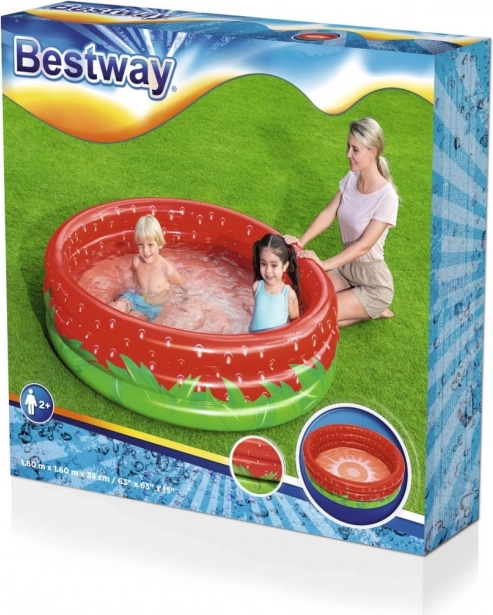 La simpatica piscina gonfiabile a forma di fragola regala ai bambini dai 2 anni in su tante ore di divertimento estivo in giardino. Grazie alle dimensioni compatte 160 × 38 cm si colloca facilmente, è pronta all’uso in un attimo e altrettanto semplice da svuotare e riporre. Il materiale in PVC resistente, i 3 anelli gonfiabili e le pareti morbide per comfort e sicurezza assicurano giochi in acqua sereni e sicuri.