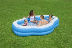 La piscina gonfiabile BESTWAY con dimensioni 270 × 198 × 51 cm è progettata per il relax di tutta la famiglia. Due anelli gonfiabili garantiscono stabilità, mentre le pareti sagomate e i due sedili integrati offrono un comodo supporto per la schiena. I pratici portabicchieri tengono sempre a portata di mano i tuoi rinfreschi e la finestra trasparente aggiunge un elemento di divertimento per i bambini.