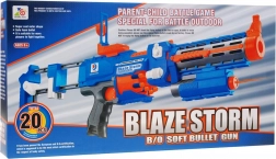Ideale per battaglie in casa e all'aperto: blaster elettrico a dardi in schiuma Blaze Storm 2 in 1 con calcio rimovibile e mirino laser. Offre fuoco completamente automatico da un caricatore a tamburo da 10 dardi, cadenza fino a 3 colpi al secondo e gittata circa 10 m. Nella confezione sono inclusi 20 dardi in schiuma; alimentazione 3× AAA (pile non incluse).
