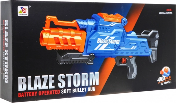 Blaster elettrico per bambini BLAZE STORM per età 8+ offre fuoco rapido, dardi in foam sicuri e comodo caricamento superiore. La pratica finestra di servizio aiuta a rimuovere velocemente eventuali inceppamenti. Nella confezione ci sono 40 dardi lunghi in foam per un divertimento prolungato (alimentazione 8× AA, non incluse).