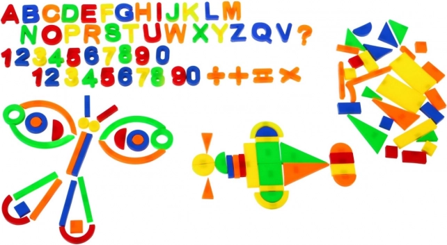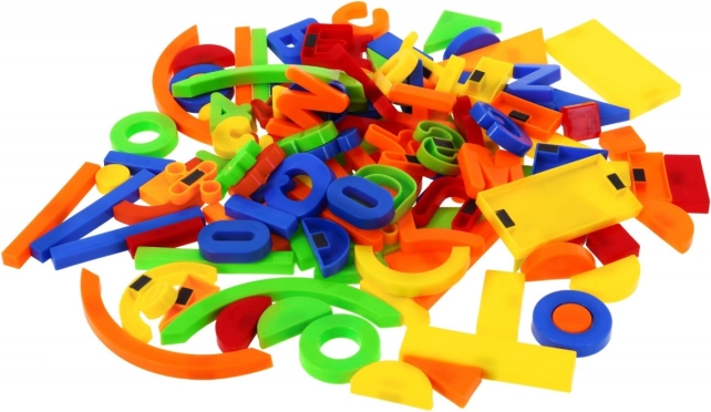 Un mix completo di lettere, cifre, forme e simboli offre infinite combinazioni per comporre parole, contare e creare con creatività.