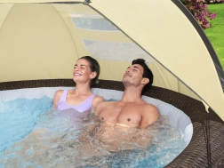 Questo tettuccio per vasche idromassaggio garantisce ottima protezione e privacy durante i tuoi momenti di relax in giardino. Con finestre ventilate per un flusso d'aria libero e un montaggio semplice, è l'accessorio ideale per tutti i modelli di vasche Bestway, ad eccezione di St. Lucia e Vancouver.