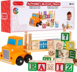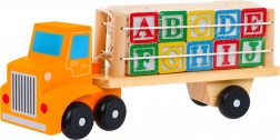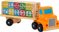 Scopri la magia del gioco con il camion in legno e i blocchi alfabetici. Questo set unisce gioco e apprendimento in uno ed è ideale per i più piccoli che imparano l'alfabeto in modo giocoso.