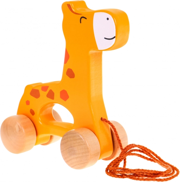 Le ruote in legno e la semplice cordicella permettono ai bambini di trainare facilmente la giraffa su diverse superfici.