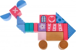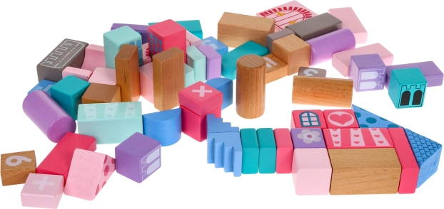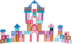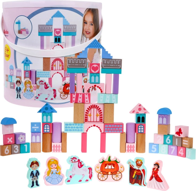 Set di costruzioni in legno, progettato con enfasi sulla sicurezza, contiene 67 elementi diversi, che offrono divertimento e apprendimento simultanei. I bambini possono imparare forme, figure geometriche e sviluppare il pensiero logico attraverso il gioco. I blocchi sono confezionati in un secchio con un coperchio dotato di assortitore, in cui possono essere inseriti blocchi di forme corrispondenti.