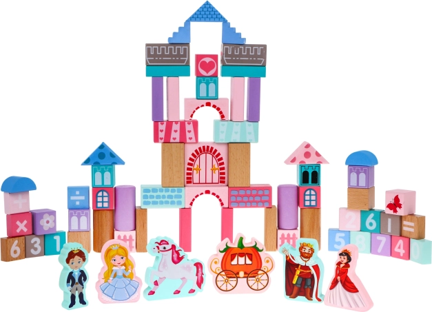 Il set include blocchi colorati che possono essere utilizzati per creare un castello da fiaba, sostenendo la creatività dei bambini.