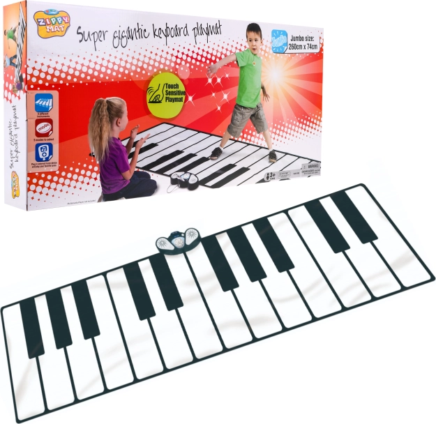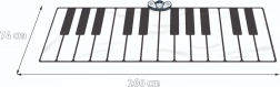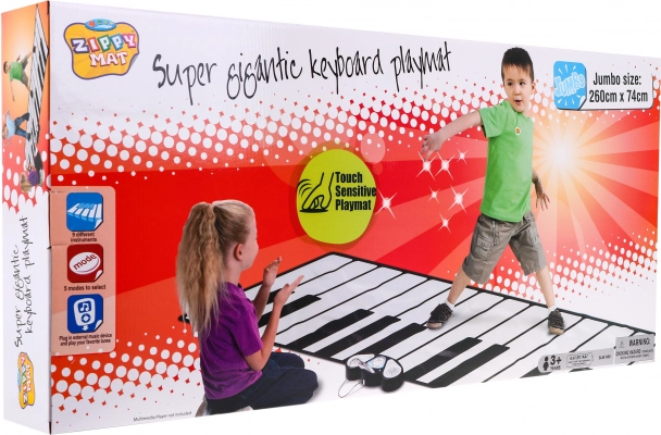 Dimensioni del tappeto: 260 x 74 cm. Dimensioni dell'imballo: 86 cm x 40 cm x 11 cm. Il giocattolo è destinato a bambini dai 3 anni ed è alimentato da 4 batterie AA (non incluse).