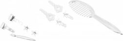 Nella confezione trovi pettine, elastico decorativo e mollette: tutto il necessario per acconciature belle e resistenti ogni giorno.
