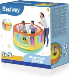 Regala ai bambini ore di divertimento in sicurezza con il trampolino gonfiabile BESTWAY. Grazie al pavimento gonfiabile morbido, alle pareti imbottite e alle finestrelle per un facile accesso, saltare, rotolare e arrampicarsi è comodo e sicuro. Il design colorato stimola il gioco, mentre il robusto materiale in vinile garantisce una lunga durata. Ideale per bambini 3–6 anni con portata fino a 85 kg.