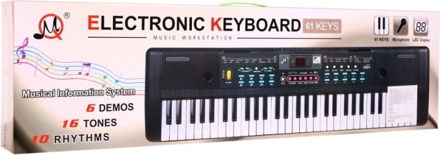 Questo strumento a tastiera è progettato per motivare i bambini all'educazione musicale e permettere loro di esprimersi creativamente. Dispone di 61 tasti, che includono 36 tasti bianchi e 25 tasti neri. Funzioni come 16 toni e 10 ritmi offrono una vasta gamma di stili musicali.
