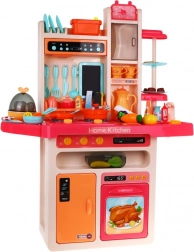 La grande cucina multifunzione per bambini offre un gioco di cucina realistico grazie all’acqua corrente dal rubinetto, agli effetti luminosi e sonori e al bruciatore interattivo con vapore. Include 65 accessori, tra cui frigorifero, forno, lavello, lavagna per gessetti e divertente “jajowar” per le uova. Ideale per bambini dai 3 anni.