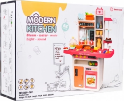 Questa elegante cucina per bambini favorisce la creatività e lo sviluppo della motricità fine. Grazie a funzioni realistiche come l’acqua corrente, il fornello che emette vapore, luci e suoni, i bambini vivono un’esperienza di cucina autentica. Non mancano forno, frigorifero, cappa con lucina e ampi ripiani contenitivi.