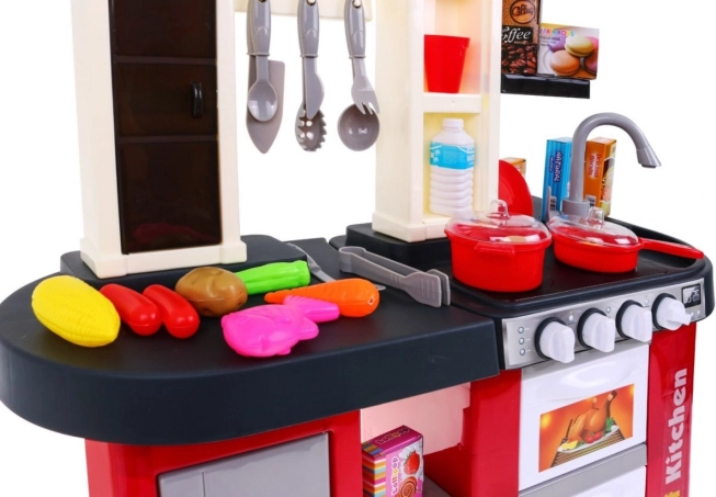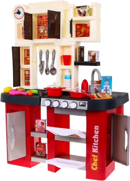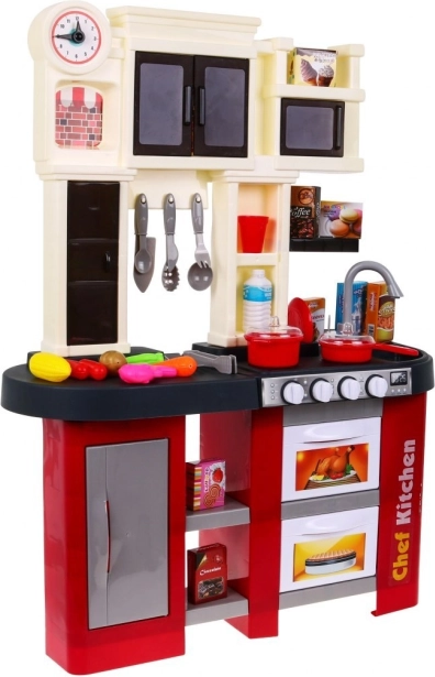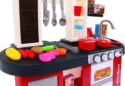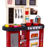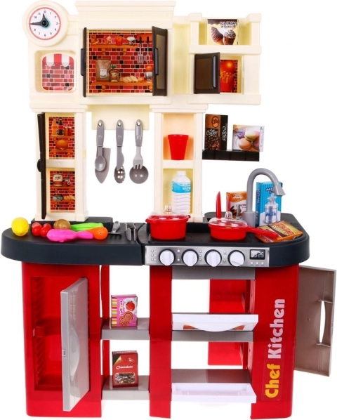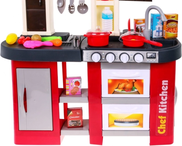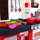 Questa spaziosa cucina in plastica dal design rosso e nero offre ai bambini dai 3 anni un’esperienza di cucina autentica. I effetti luminosi e i suoni di cottura e frittura attivati girando le manopole incoraggiano il gioco creativo e lo sviluppo della motricità. È inclusa anche un’autentica rubinetteria funzionante, che rende il divertimento ancora maggiore.