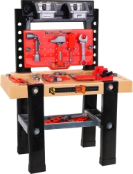 Costruite ai bambini la loro prima officina! Il banco da lavoro stabile con ganci, ripiano e cestini offre uno spazio ordinato per giocare e imparare. Il set include una vasta selezione di utensili e componenti in plastica, sicuri per le mani piccole e ideali per esercitare la presa, la coordinazione occhio–mano e la pazienza.