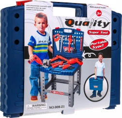 Questo set da officina è il regalo ideale per i piccoli tuttofare dai tre anni. Include una valigetta portatile e un banco da lavoro ricco di strumenti divertenti.