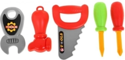 Include vari strumenti come chiave, martello, seghetto e cacciaviti. Ogni pezzo è in colori vivaci per un divertimento ancora maggiore.