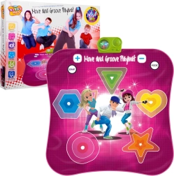 Il tappetino è dotato di 5 grandi campi illuminati, un pulsante SELECT per cambiare l'accompagnamento musicale (5 accompagnamenti musicali), pulsanti per regolare il ritmo musicale (+/-), un pulsante START per iniziare la sfida musicale e un grande pannello sonoro con proiettore colorato, altoparlante e pulsante per regolare il volume e un pulsante ON/OFF. Il tappetino si spegne automaticamente dopo 2 minuti di inattività. È possibile collegare un telefono tramite cavo.