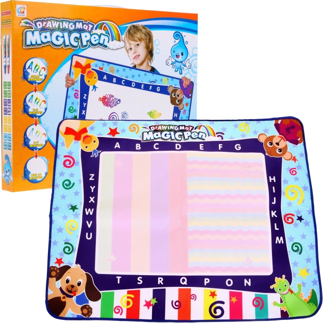 Questo tappetino da disegno ad acqua è realizzato con un materiale piacevole, che si piega facilmente. A differenza della carta, è riutilizzabile molte volte. Disegna con il pennarello magico, e dopo 10 minuti puoi ricominciare a creare. Il tappetino include stencil con vari elementi che il bambino può tracciare, stimolando così il suo sviluppo.