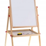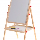 Questa solida lavagna in legno unisce il disegno creativo all’apprendimento intelligente. Il lato bianco è magnetico per scrivere con pennarello cancellabile e usare magneti, il lato nero è adatto al classico disegno con gesso. Grazie all’altezza regolabile si adatta facilmente a bambini di età diverse e cresce con loro.