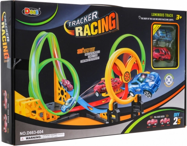 Pista da corsa per bambini con cerchio mobile e 2 auto LED con 3 loop