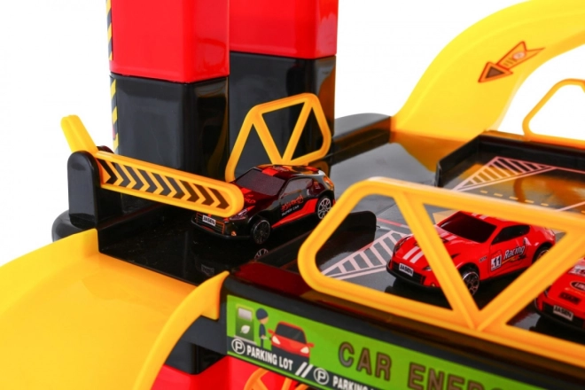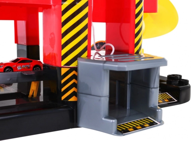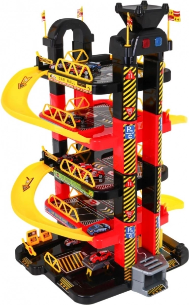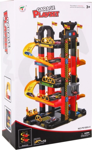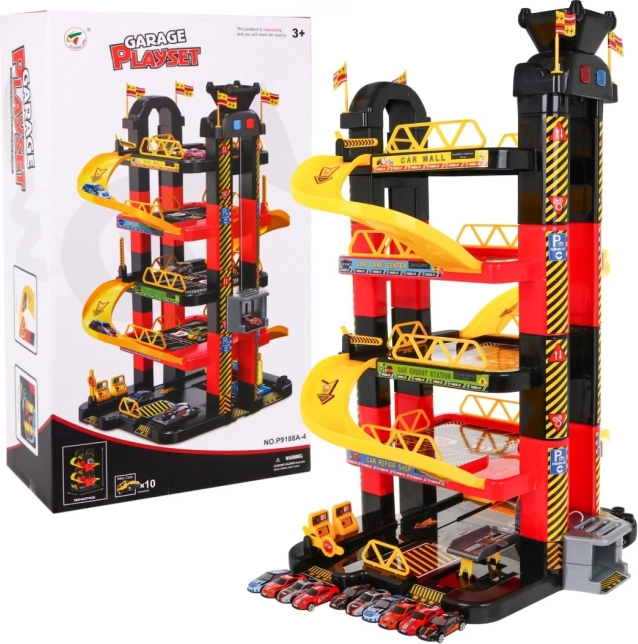 Il garage di parcheggio per bambini offre un'area di gioco emozionante con cinque livelli, accessibili grazie all'ascensore e agli scivoli. Il piano più basso include un autolavaggio, un servizio meccanico e una stazione di rifornimento. Gli altri livelli fungono da parcheggio per le auto, mentre in cima c'è un posto per l'elicottero con ascensore mobile dotato di effetti luminosi alimentato da tre batterie AA (non incluse).