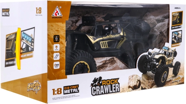 Questo robusto fuoristrada RC è fatto per l’avventura. Grazie alla scala 1:8 ha una presenza imponente, la carrozzeria in metallo resiste agli impatti e le sospensioni alte gestiscono senza problemi buche, rocce e sabbia. La trazione 4x4 trasferisce la potenza a tutte le ruote, così da scalare gli ostacoli con facilità mantenendo trazione nei terreni difficili.