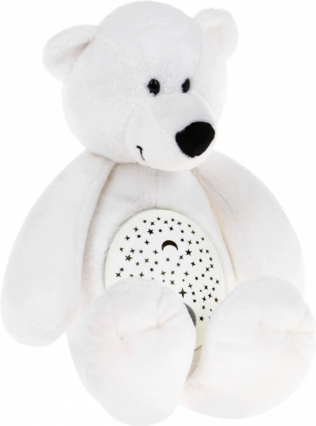 Questo orsetto interattivo crea un'atmosfera rilassante per favorire l'addormentamento. Il proiettore nel pancino proietta su soffitto e pareti un delicato cielo stellato nei colori rosso, blu, verde e viola, che catturano l'attenzione del bambino e al tempo stesso lo calmano. Il peluche, morbido e piacevole al tatto, è sicuro per i lattanti e invita alle coccole.