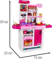 Questa spaziosa cucina offre ai bambini un’esperienza di cucina realistica: due fornelli con luci e suoni di frittura e bollitura, lavello con rubinetto a pompetta da cui scorre davvero l’acqua, forno e frigorifero apribili. Il pannello touch offre suoni di animali, melodie, apprendimento dei numeri da 1 a 10 in inglese, controllo del volume, suoneria del telefono e altri effetti. Grazie ai colori vivaci e all’ottima fattura, la cucina è ideale per il gioco quotidiano.