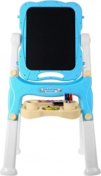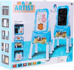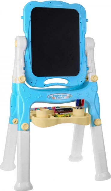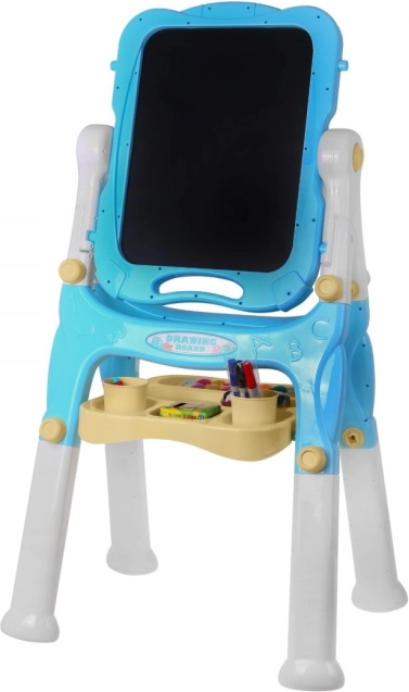 La lavagna ha da un lato una superficie bianca magnetica e dall'altro una nera per gesso, consentendo diverse possibilità di creazione e apprendimento.