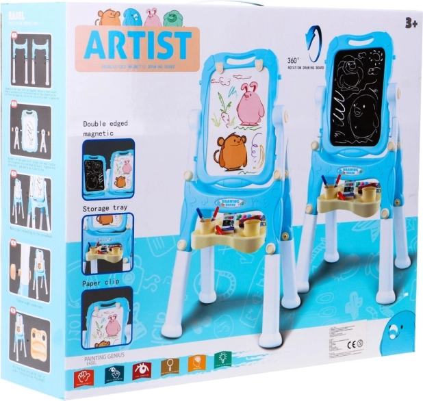 La lavagna da disegno bifacciale è progettata per incoraggiare un infanzia piena di creatività. Sul lato bianco i bambini possono scrivere con i pennarelli inclusi e cancellare facilmente tutto con la spugnetta. La funzione magnetica consente di fissare magneti colorati, mentre le clip permettono di bloccare i fogli per ulteriori disegni.