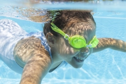 Le lenti grandangolari e antiurto offrono un’ottima visibilità sott’acqua e una migliore orientazione durante l’apprendimento del nuoto.