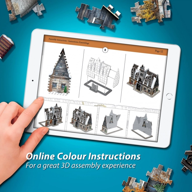Scopri la magia di Hogsmeade con il dettagliato modello della locanda I Tre Manici di Scopa. La texture “in pietra”, i comignoli e i tetti innevati creano un pezzo espositivo d’effetto. Il puzzle 3D WREBBIT unisce sfida e rilassamento – senza colla né strumenti.