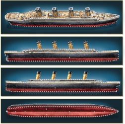 Elaborata realizzazione con dettagli come scialuppe di salvataggio e ponti, che mette in risalto le caratteristiche storiche e costruttive della nave leggendaria.