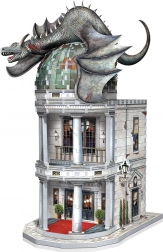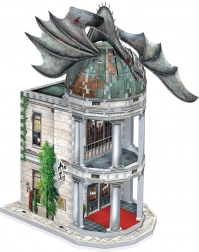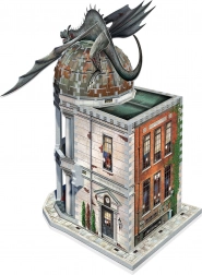 Il set include un dettagliato modello 3D della Banca dei Gringott con un drago al centro della cupola. La struttura presenta elementi architettonici come colonne e finestre, con edera sui muri.