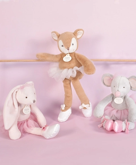 Questa morbida giocattolo di peluche topolina è vestita con un costume da ballerina con una gonna tutu di tulle e scarpette di satin decorate con un fiocco di velluto. Offre ai bambini una miscela di colori tenui e armonie trendy, che attraggono sia i piccoli che i grandi. È ideale non solo per giocare in casa ma anche per le passeggiate.