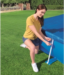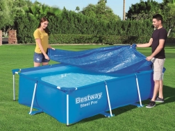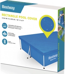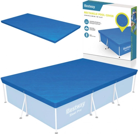 La copertura è progettata per proteggere la tua piscina rettangolare con telaio di dimensioni 300 x 201 cm. Aperture di drenaggio speciali sulla copertura impediscono l'accumulo di acqua. Grazie alle cinghie integrate, si monta facilmente e in modo sicuro alla struttura della piscina.
