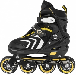 La piastra del telaio in alluminio e le ruote in PU 64×24 mm con durezza 85A, combinate con cuscinetti ABEC-7, offrono una scorrevolezza stabile e sicura. Sul ghiaccio apprezzerai le lame in acciaio inox, durevoli e facili da mantenere. Il pattino destro è dotato di freno per arresti più sicuri.