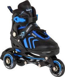 Set universale 4 in 1 per bambini per il divertimento tutto l’anno: pattini in linea, pattini da ghiaccio e configurazione convertibile in uno. Grazie alla regolazione a 5 livelli (34–38), al telaio in alluminio, alle ruote in PU 70×24 mm con durezza 85A e ai cuscinetti ABEC-7 offre scorrevolezza e stabilità. Il comfort è assicurato dalla struttura semi-rigida, dalla ventilazione e da un morbido plantare in schiuma EVA con materiale Velvet.