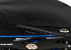 Lacci, strap in velcro e leva con blocco mantengono il piede ben saldo. Il freno sul pattino destro aiuta in arresti controllati.