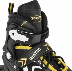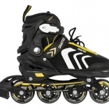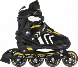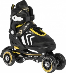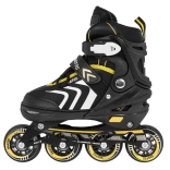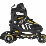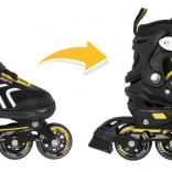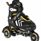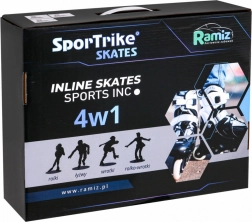Set universale per bambini 4 in 1 che combina pattini in-line, pattini a rotelle (trek) e pattini da ghiaccio in un unico equipaggiamento. Grazie alla regolazione a cinque livelli della misura 34–38, alla scarpetta interna confortevole con morbida schiuma EVA e alla sicura chiusura tripla, è ideale per accompagnare la crescita e garantire una guida sicura. Il telaio in alluminio, le ruote in PU 70×24 mm, i cuscinetti ABEC‑7 e le lame in acciaio inox assicurano una scorrevolezza fluida e una lunga durata.