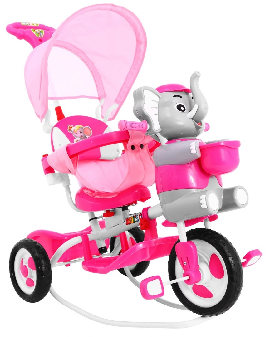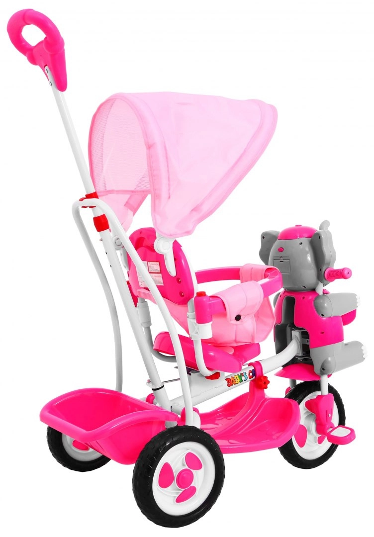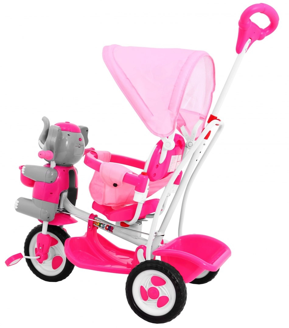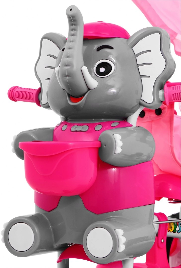 Adorabile triciclo per bambini con motivo dell’elefantino e ricca dotazione per una guida sicura e confortevole da 1 a 5,5 anni. Offre controllo genitoriale collegato al manubrio, cappottina regolabile per il sole, barriera di sicurezza e ampie ruote in schiuma per una marcia fluida. I bambini ameranno i effetti sonori sulla testa dell’elefantino e i pratici cestini e vani nascosti per i piccoli oggetti.