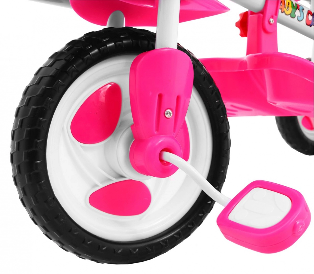Il manico regolabile collegato saldamente al manubrio consente di guidare facilmente il triciclo e correggere le manovre del bambino.