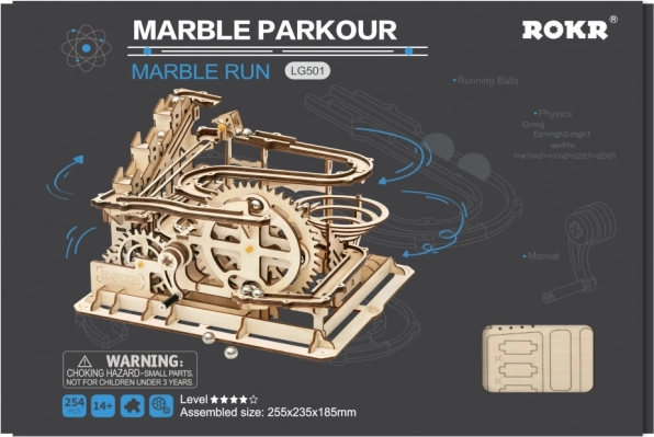La pista di biglie in legno Rokr rappresenta un affascinante connubio tra scienza e meccanica. Assembla il modello e osserva il movimento delle biglie grazie agli elementi meccanici complessi.