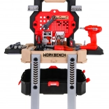 Questo realistico banco da lavoro per bambini combina una postazione ordinata con una valigetta capiente, così gli attrezzi sono sempre a portata di mano e facili da riporre. Grazie ai 78 elementi e al trapano/cacciavite funzionante, i bambini potranno provare ad avvitare, segare e montare, apprendendo i principi base del lavoro in officina.