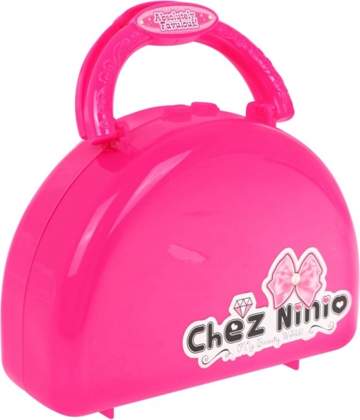 - Borsetta apribile, specchietto, 10× ombretti, 12× lucidalabbra, 2× rossetti, 2× smalti per unghie, 2× pennelli, 3× mollette per capelli