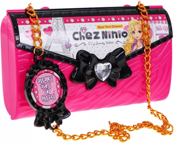 Una volta aperta, la borsetta rosa si trasforma in una pratica mini toeletta, dove tutto è ordinatamente disposto. Il set stimola creatività, motricità fine e fantasia e permette di imitare in sicurezza il mondo degli adulti.