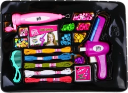 Dotazione completa per decorare i capelli e realizzare braccialetti e collane – perline, anellini, letterine, cordini, pettinino e pratici strumenti per creare con facilità.