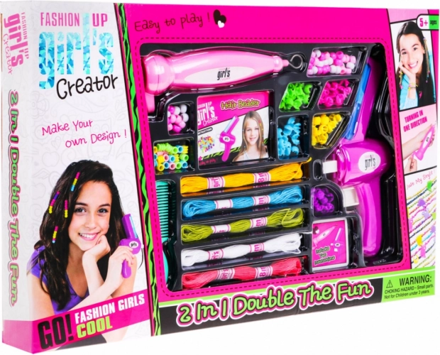 Gli strumenti ergonomici aiutano i bambini a infilare e intrecciare facilmente le decorazioni nei capelli e sui cordini. Grazie a loro la creazione è intuitiva e divertente.