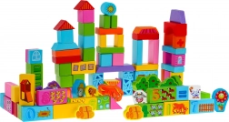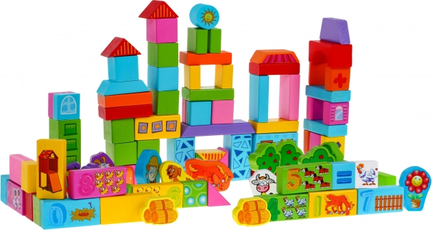 Questo ricco set di blocchi in legno offre ai bambini ore di divertimento significativo. I blocchi sono realizzati in legno di qualità, verniciati con colori sicuri e presentano superfici lisce con bordi arrotondati senza bave per un gioco confortevole e sicuro. Diverse forme e colori invitano a costruire casette, torri, ponti e semplici veicoli.