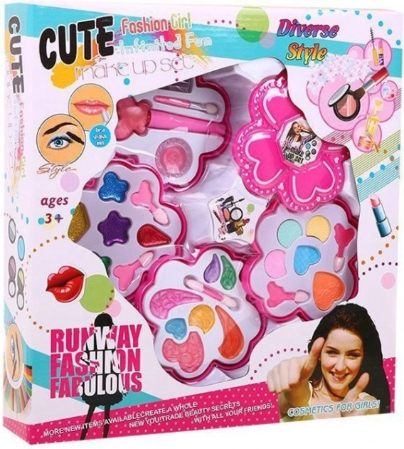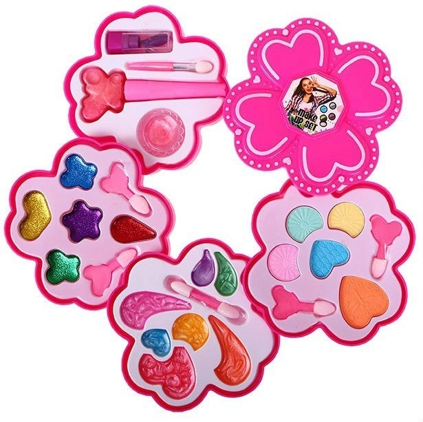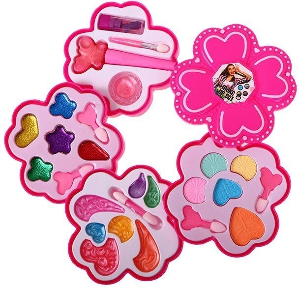 Questo grazioso cofanetto floreale con make-up farà felice ogni bambino che ama giocare al salone di bellezza. La struttura pieghevole su quattro livelli con coperchio nasconde una ricca palette di colori e texture per truccare bambole in modo fantasioso e garantire un divertimento sicuro ai bambini.